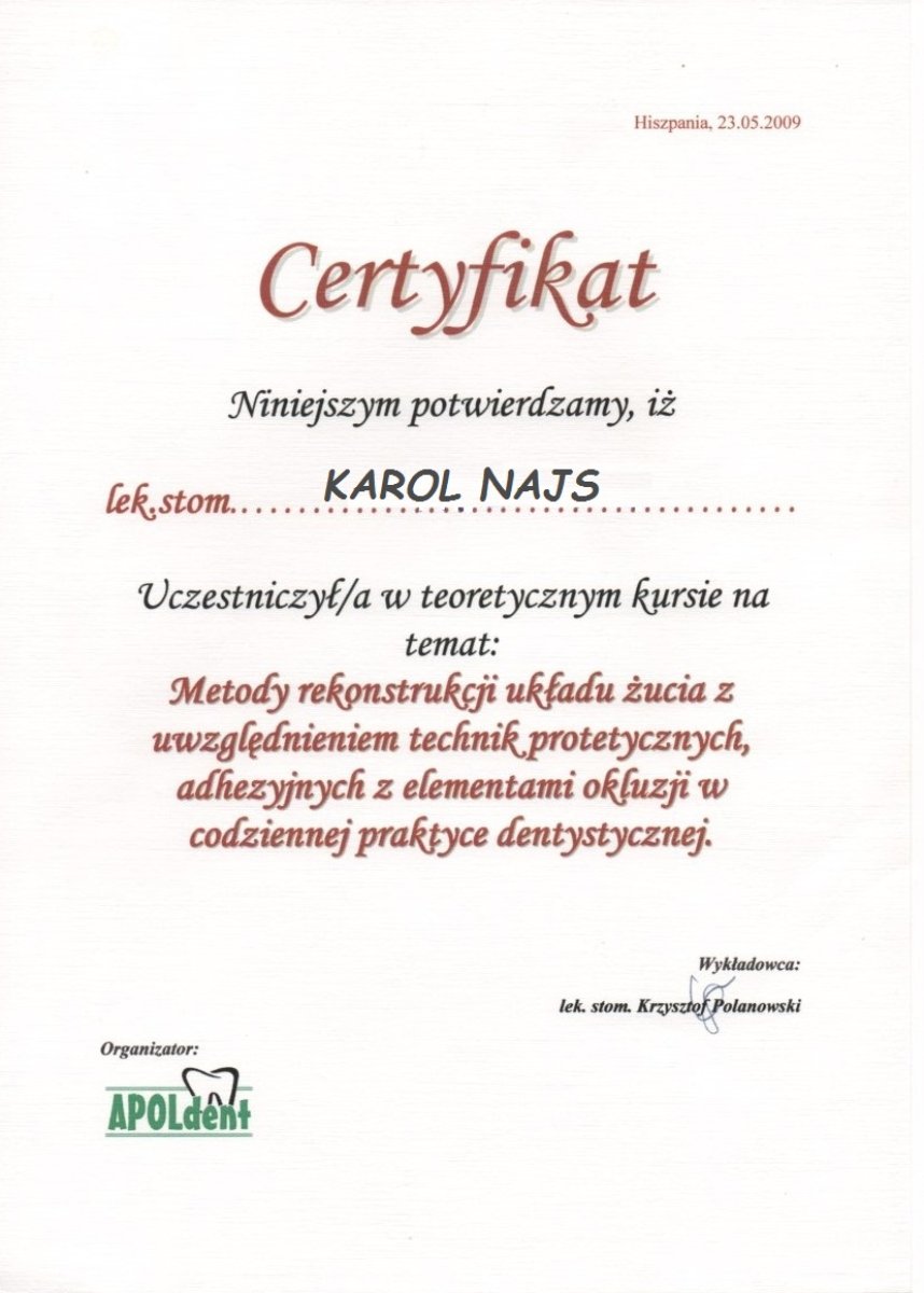 Lekarz stomatolog Karol Najs, specjalista stomatologii ogólnej